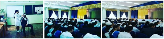 Ағымдағы жылдың сəуір айының 4 жұлдызында СӨСҚ медбикесі Даулбаева Ф. ұйымдастыруымен 8 орта мектебінде мектеп медбикелері Майлыбай Ə., Жолдыбаева А. мұғалімдердің қатысуымен 2 сын. оқушылары арасында "Бағдаршам ережесін сақтан!", "Қауіпсіз өмір!", " Дұрыс тамақтану " тақырыптарына дəріс оқып, кеңестер берді. 64 оқушы қатысты.