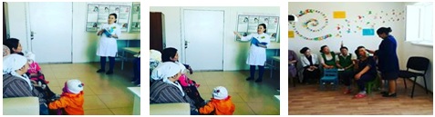 5. Ағымдағы жылдың сəуір айының 18 жұлдызында СӨСҚ медбикесі Даулбаева Ф. ұйымдастыруымен дені сау балалар кабинеті медбикесі Тұрғанбаева М. аналар арасында "Дұрыс емізу ережесі 4,3,4", " Жол жəне тұрмыстық жарақаттардың алдын " жөнінде дəріс оқылып , кеңестер берілді. 13 адам саны қамтылды.