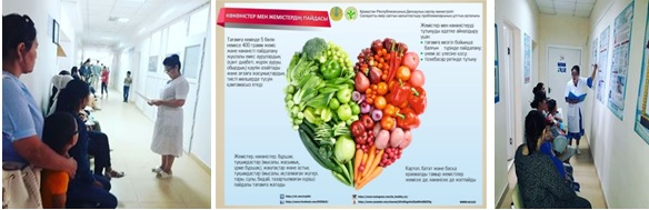 3.Емханада СӨСҚ медбикесі Даулбаева Ф., психолог Талаштақ А. ата-аналармен балалар арасында емханада «Бала мен бүкіл отбасына арналған дұрыс тамақтану » дәріс оқылып, «Бала жанының сұлулығын түсін, ата-ана!» атты тренинг ұйымдастырылды.