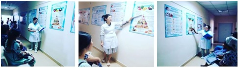1. Емханада акушерка Тоқтағанова Қ., СӨСҚ медбикесі Даулбаева Ф. жүкті аналар арасында "Күнделікті тиімді тамақтану пирамидасы " атты тақырыпқа дəріс оқып, кеңестер берді. Ақпараттық материалдар таратылды.